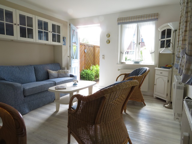 Wohnung Silke – Das Wohnzimmer mit Blick auf die Terrasse.